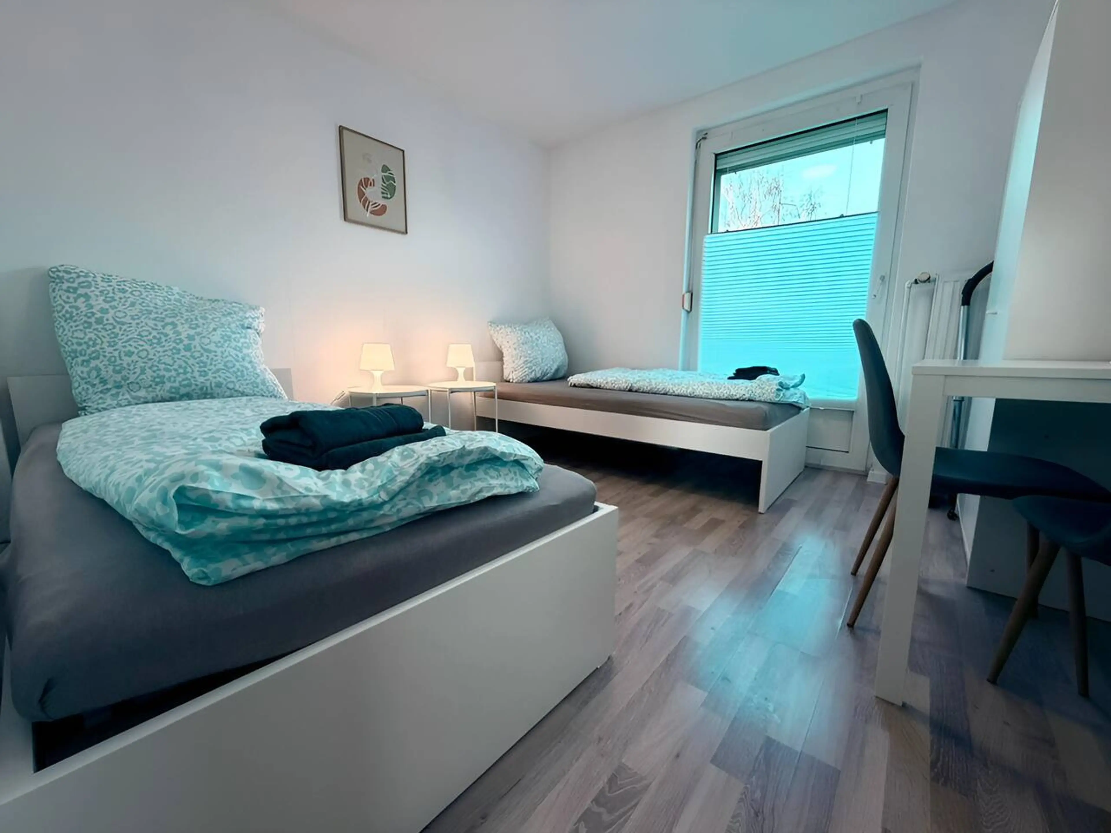 🏡 Apartment NeuenHOUSE III – Garten & Ruhig 🌿 NeuenHOUSE III – Großzügiges Apartment mit Gartenblick 🌳, 3 Schlafzimmer, voll ausgestattete Küche & Waschmaschine 🧺. Kostenloser Parkplatz inklusive 🅿️. NeuenHOUSE III bietet auf ~60 qm Platz für bis zu 6 Gäste. Drei Schlafzimmer, mit Einzelbette...